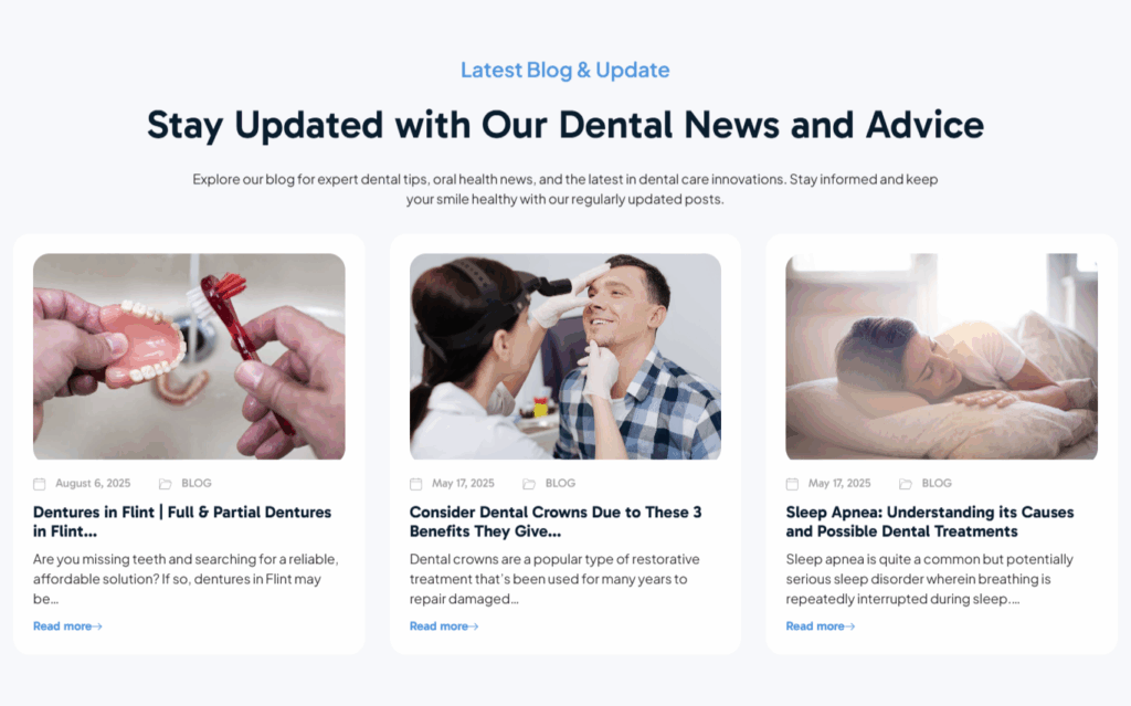 Higher SEO Rankings: Keyword-optimized content positions the practice for Dentist Flint MI.
