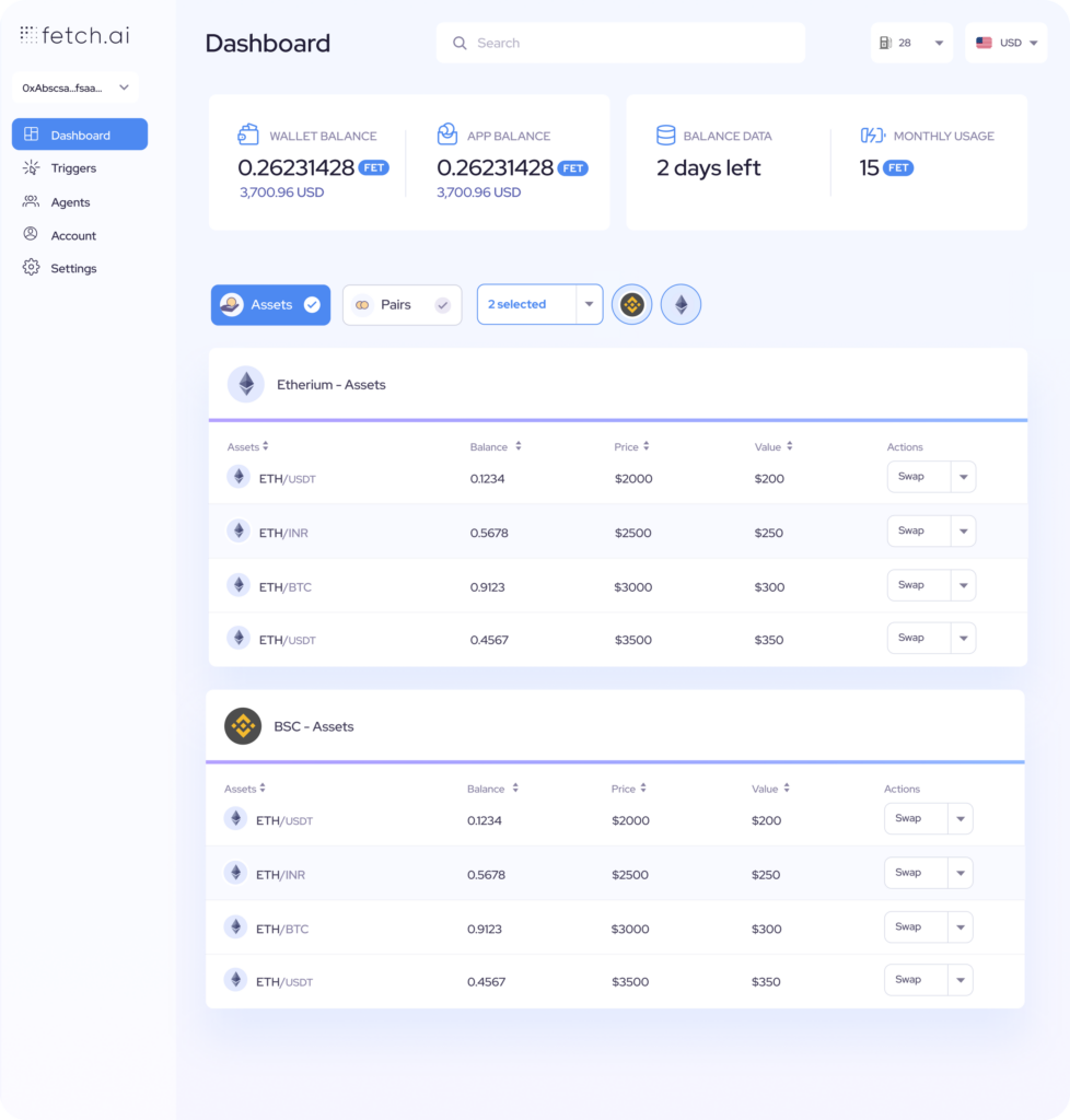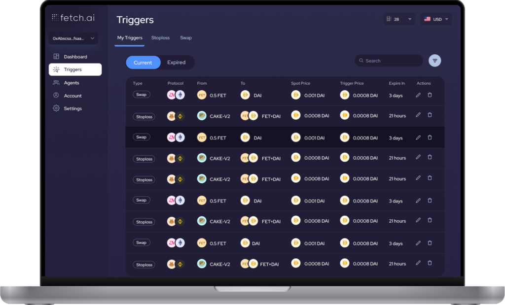 Fetch.ai enables users to configure and deploy decentralized automation agents for financial execution.