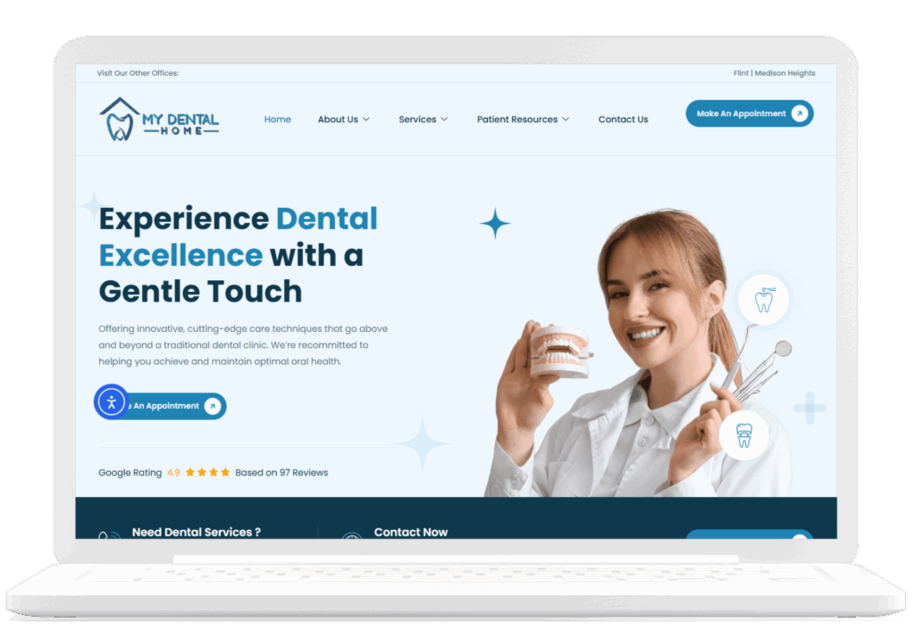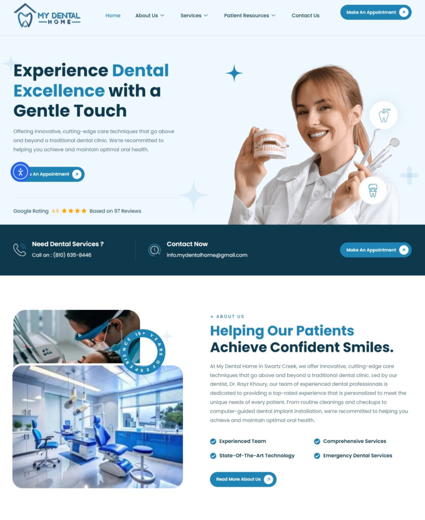 When My Dental Home approached TechYouKnow, their website was running on Duda – functional, but outdated in both aesthetics and performance. The content was minimal, the design lacked modern appeal, and SEO opportunities were being missed. Our goal was clear: create a modern, engaging, and conversion-focused website that reflects the quality and professionalism of My Dental Home.