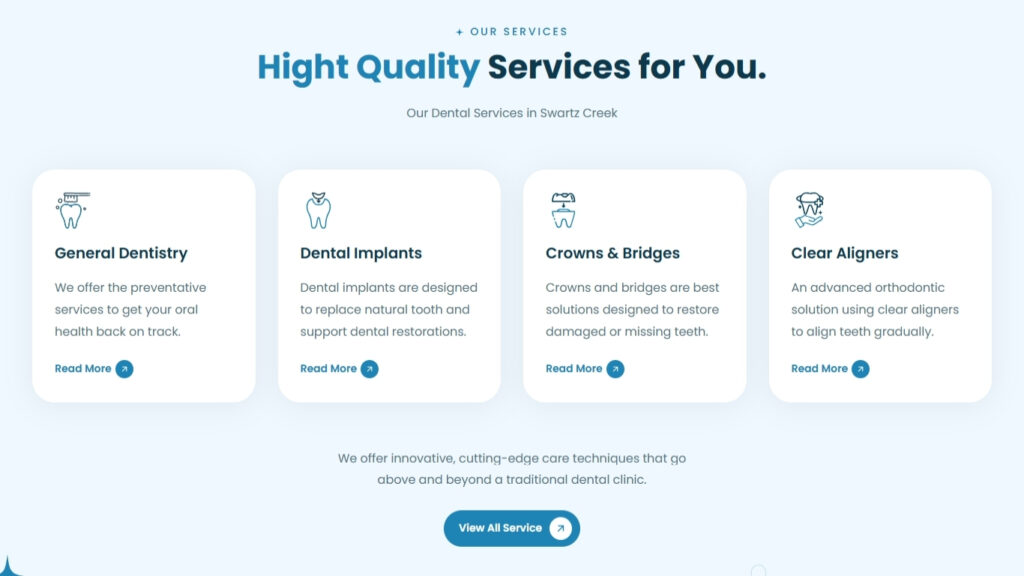Strategic keyword integration for local SEO (“Dentist in Swartz Creek, MI”)