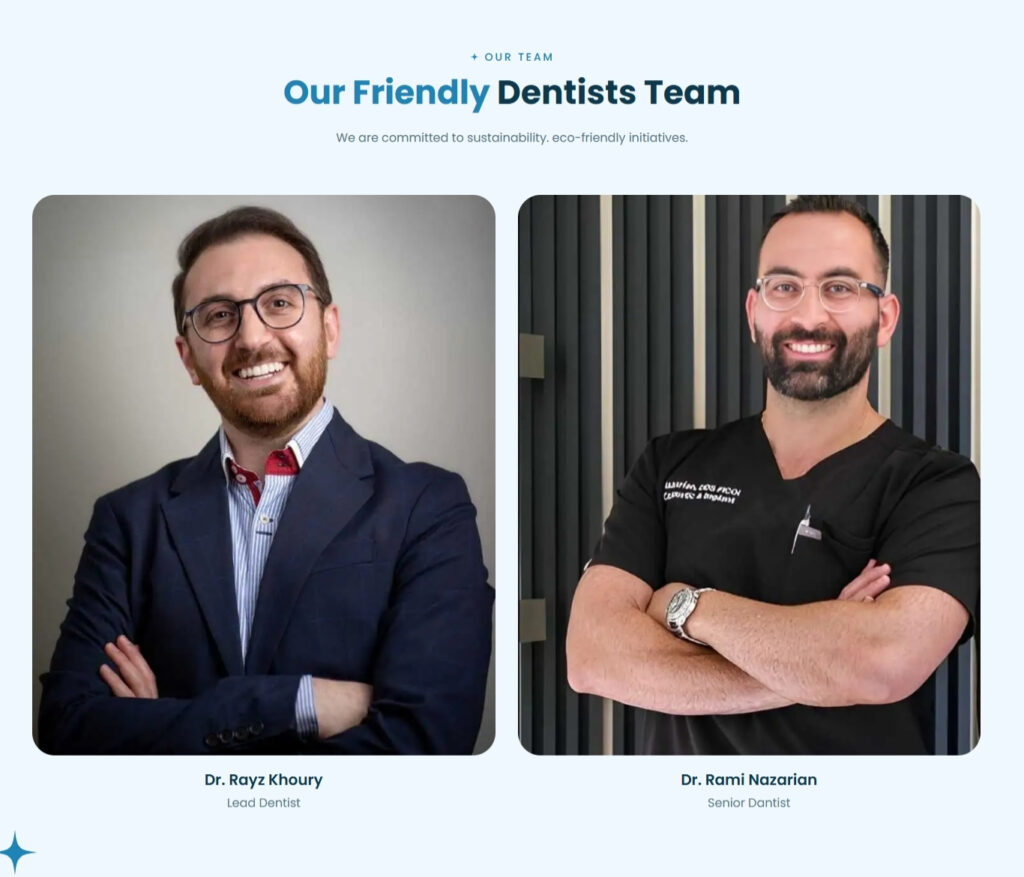 After: Multiple team profiles, high-quality portraits, expanded Dr. Khoury bio, and a dedicated testimonial section with ratings.